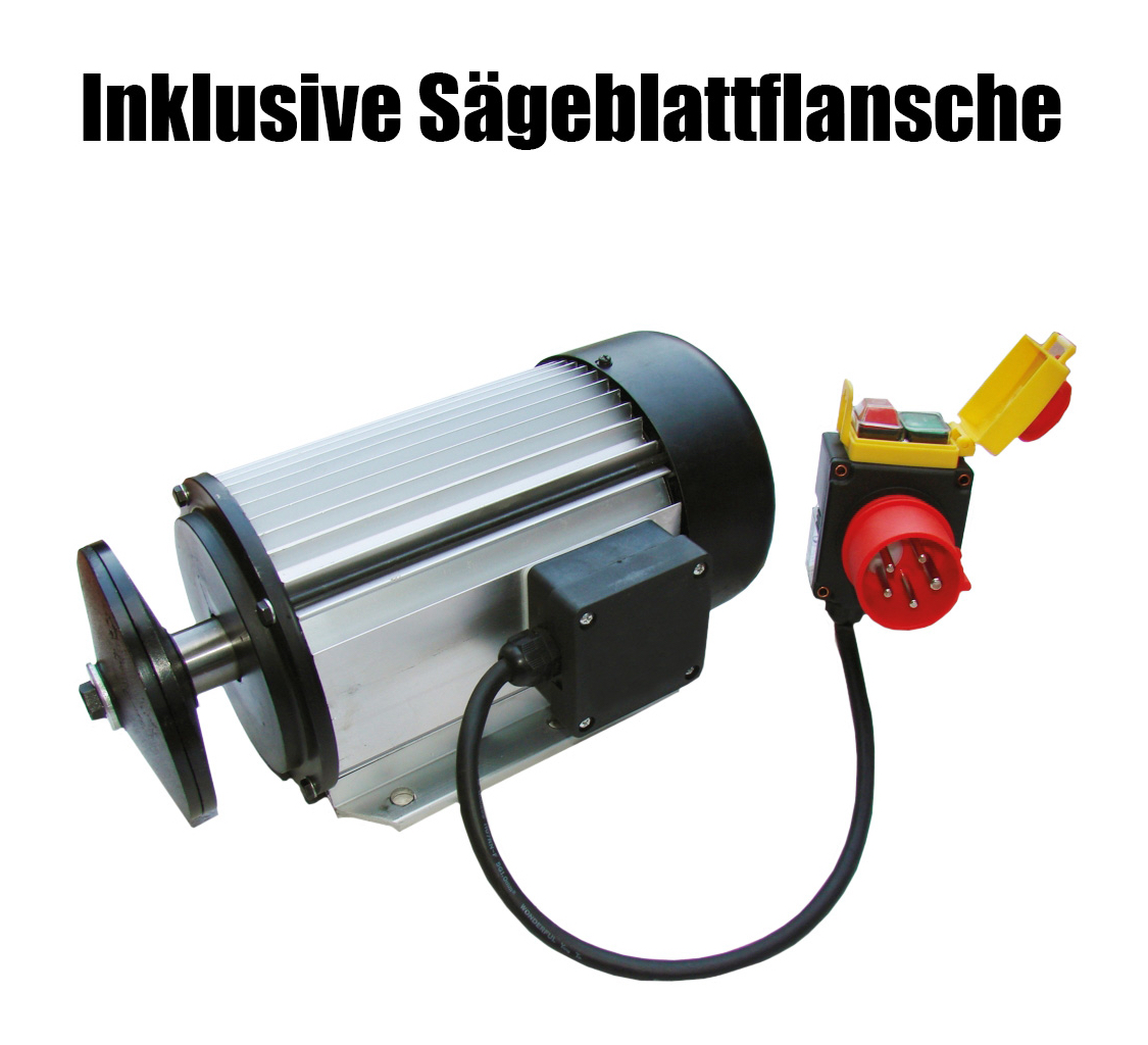 Der Starkstrommotor 5,2 kW eignet sich bestens als Antrieb für Kreissägen und andere Geräte mit hohen Anforderungem. Hier inkl.Sägeblattflansche.